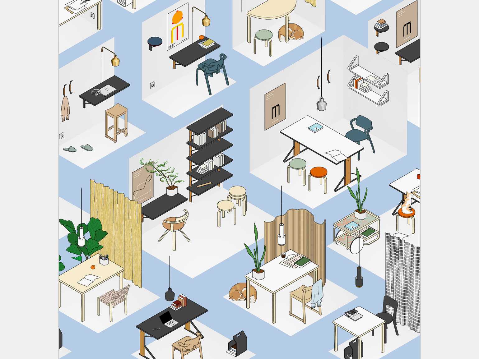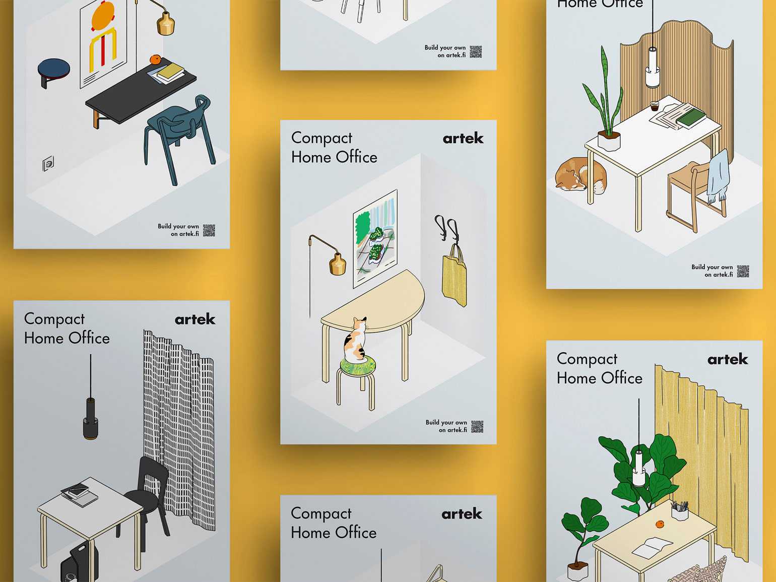 Студия Kokoro & Moi создала для Artek рекламу и визуальный стиль, который подчёркивает: эту компактную мебель можно разместить в очень маленькой комнате. Дизайнеры хотели избежать отполированного и цифрового стиля и зацепить пользователя традиционным карандашным исполнением.