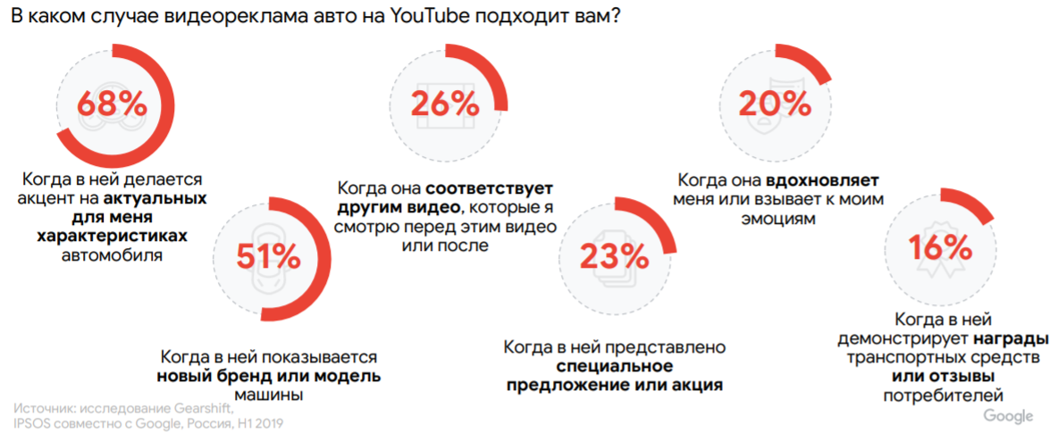 Говоря о видеорекламе в автомобильной тематике на YouTube, пользователи отмечают следующие черты, которые привлекают их в объявлениях: