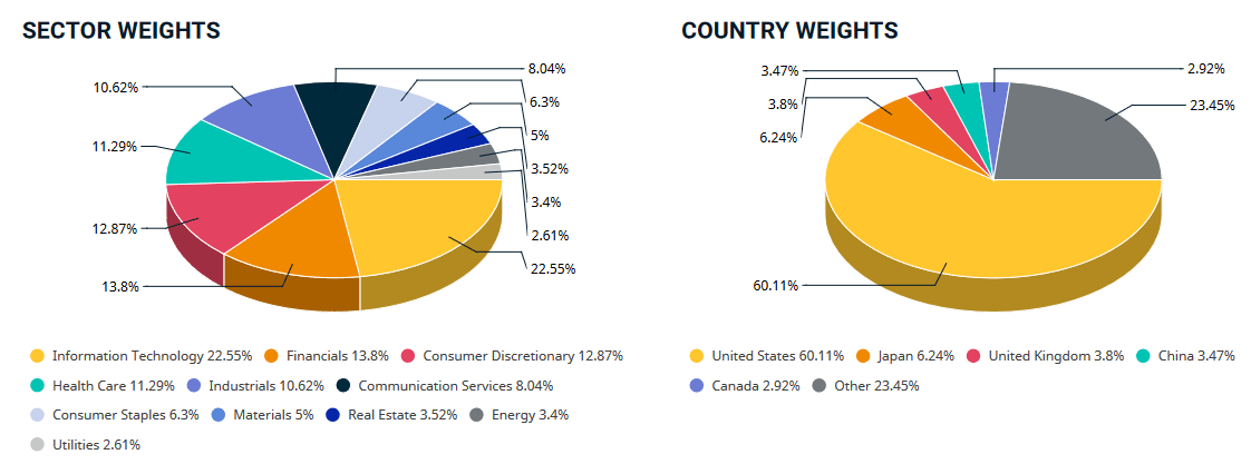 Мировая капитализация акций по индексу MSCI ACWI All Cap Index (USD) в конце 2021 года оказалась следующей: