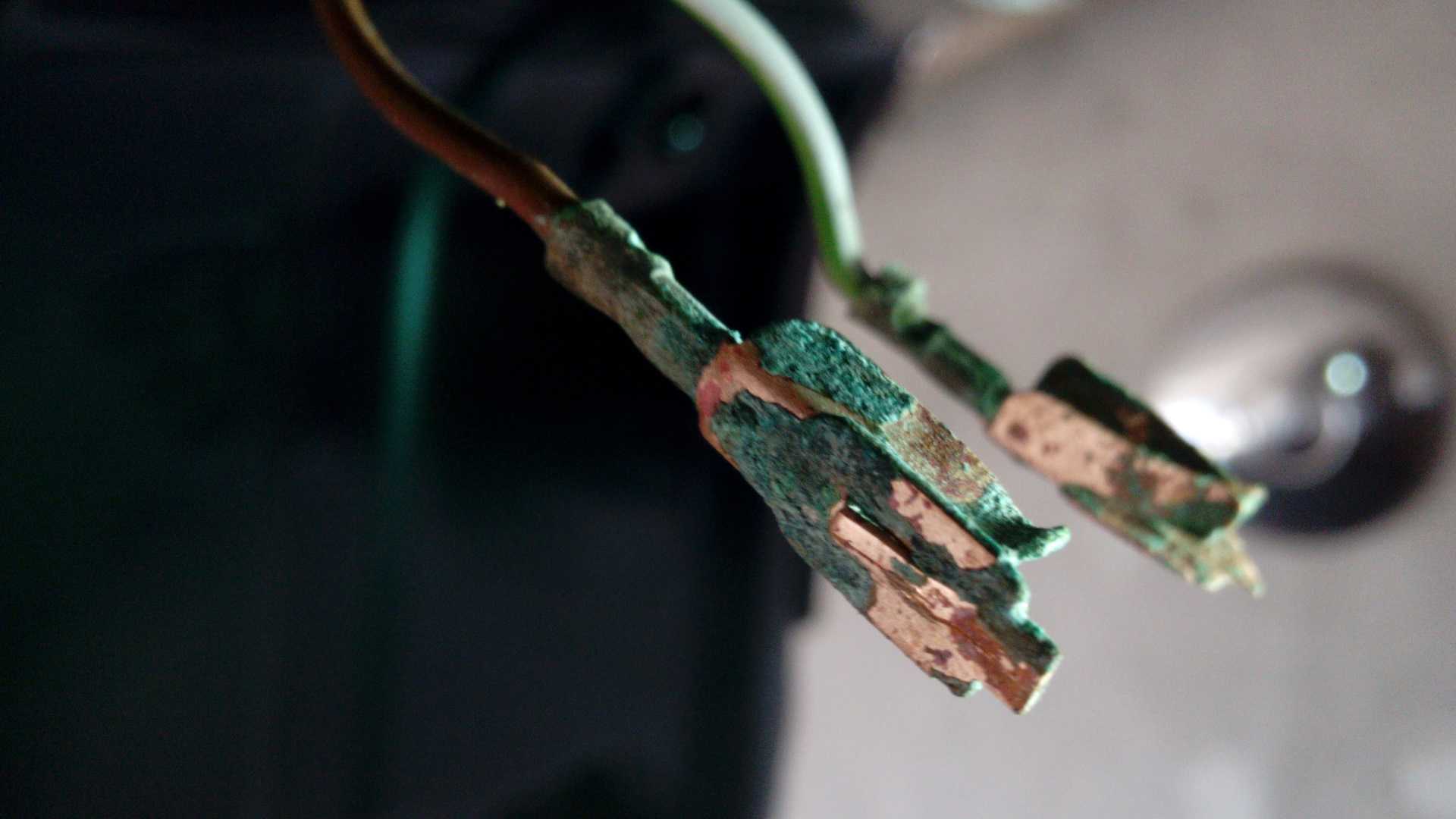 - Деформации электропроводки — окисление в местах соединения (вводах, контактах, клеммах), обрывы, разрушение изоляции проводов, короткое замыкание проводки, нарушение целостности скруток.