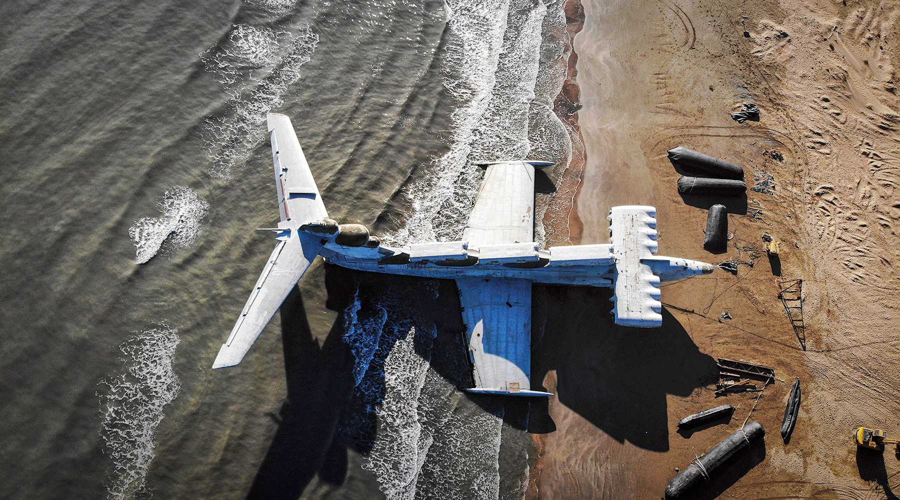 - Экраноплан «Лунь», лежащий на побережье Каспийского моря близ Дербента
