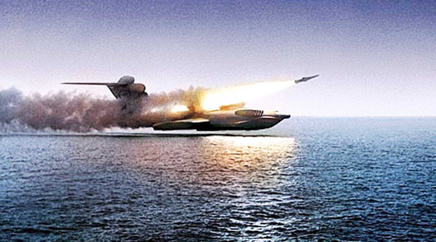 - Ракетный корабль-экраноплан проекта 903 «Лунь». Пуск ПКР «Москит» во время испытаний