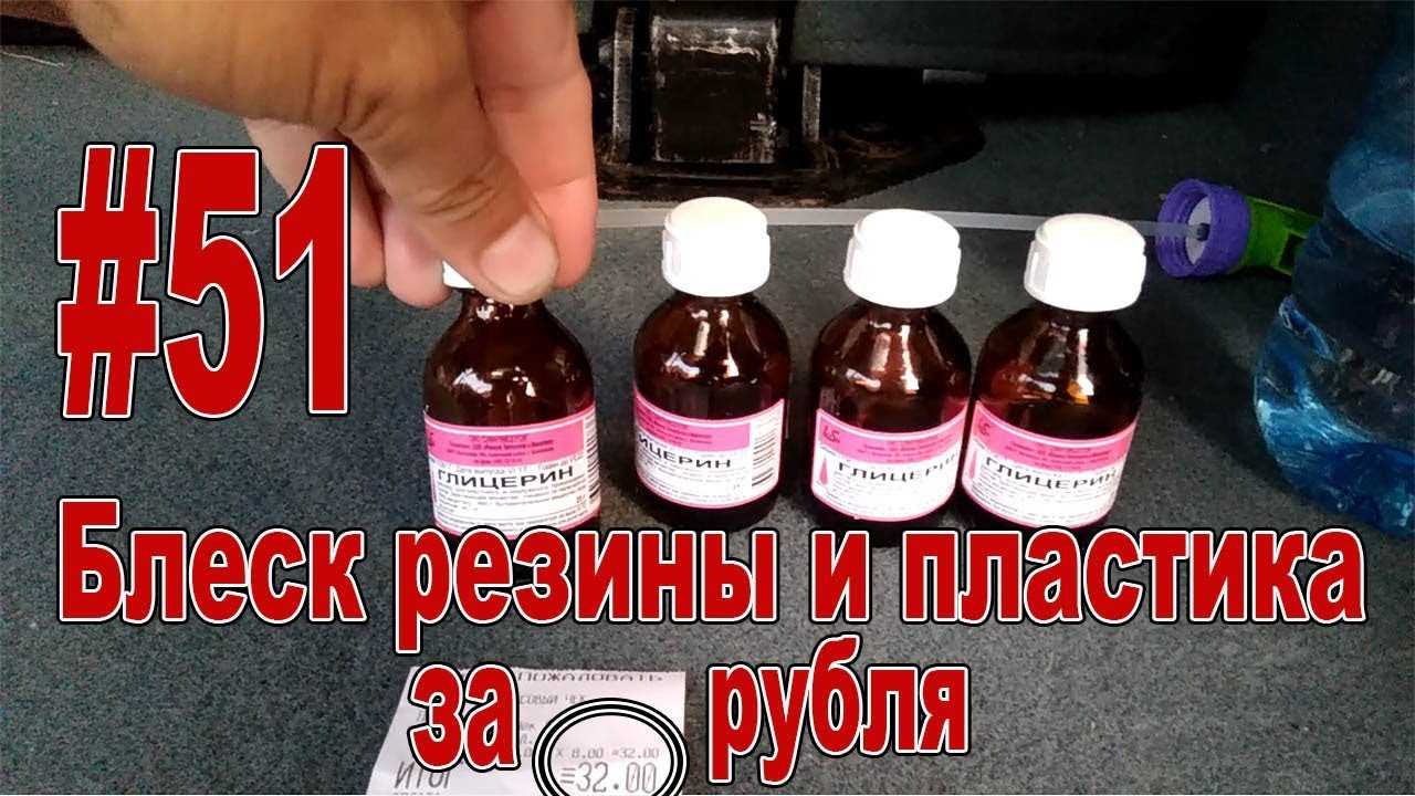 Это один из самых распространенных способов чернения автомобильной шины в домашних условиях. Глицерин представляет собой вязкую, бесцветную, гигроскопичную жидкость, смешиваемую с водой в определенных пропорциях.