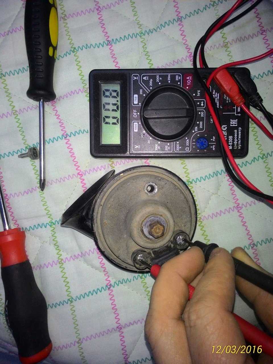 Чтобы убедиться в том, что виновником проблемы является глубокий разряд аккумулятора, достаточно включить несколько потребителей (освещение, электродвигатель отопителя и др.) и нажать на звуковой сигнал. Последний либо не включится вообще, либо будет слышен с хрипами, пониженной амплитудой или затуханием.