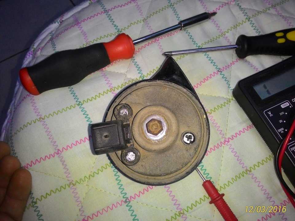 Для начала прозвонил его тестером — результат обрыв обмотки.У меня был старый сигнал HELLA решил вкорячу его.Для этого надо с родного снять разъем, я расковырял контакты сбоку от разъема (думал там припаян разъем)