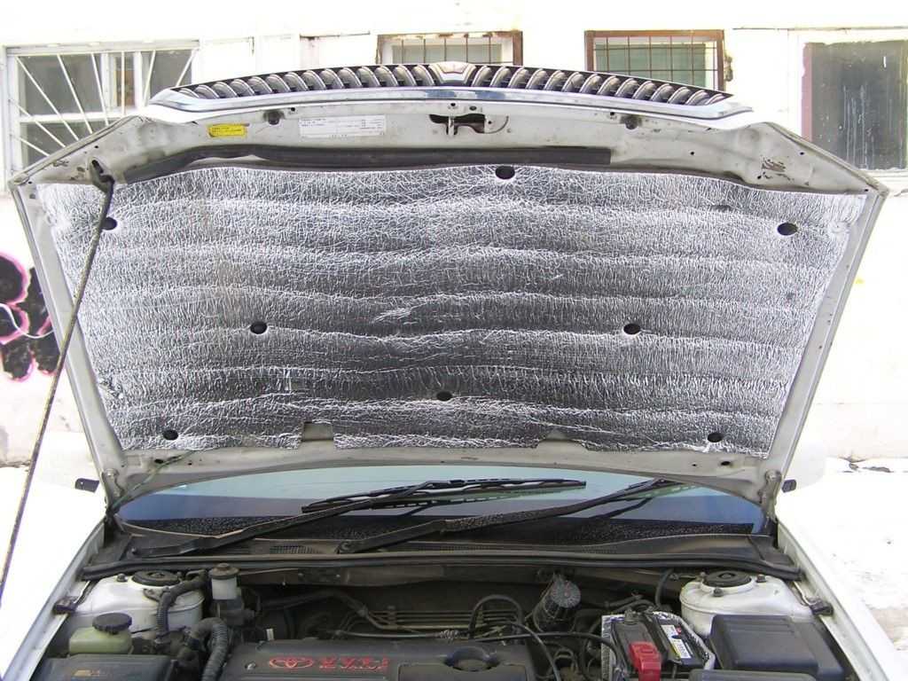Важно помнить, что для этих целей подойдут только те материалы, которым для монтажа необходимо нагревание, так как высокая температура внутри моторного отсека может привести умягчению и отслаиванию виброзащитного слоя. При этом так же стоит учитывать наличие фольгированного слоя, который будет иметь функцию отражателя тепла