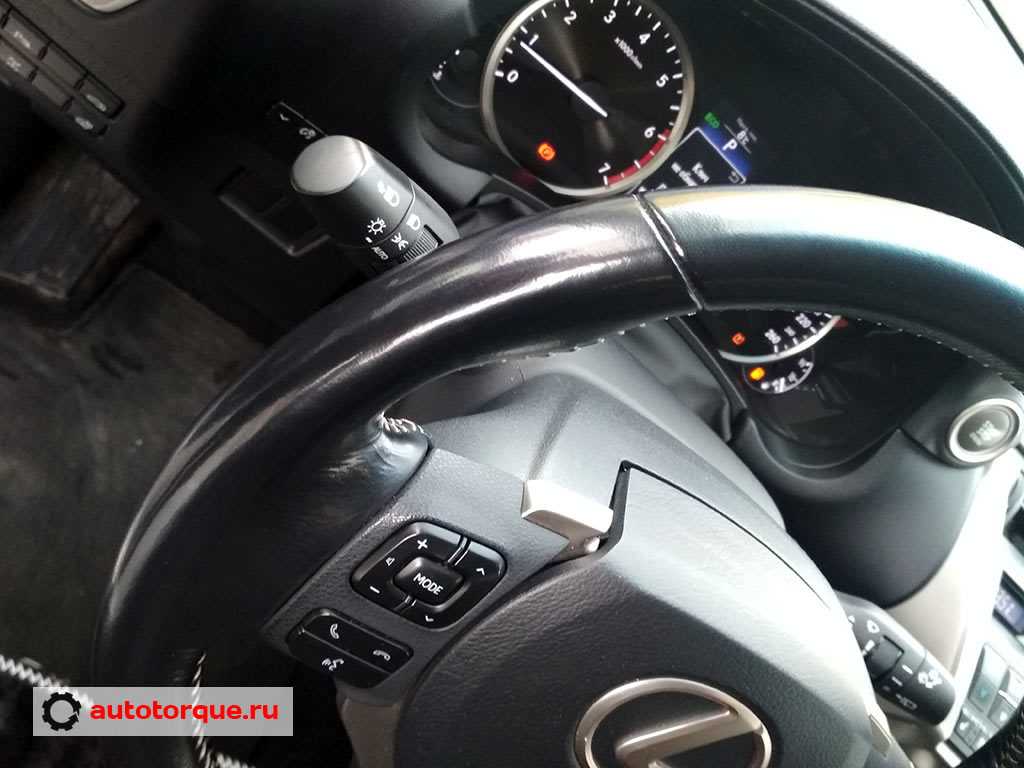 Правая рука водителя для пользования тачпадом располагается идеально. Туннель пола высокий, под запястьем оказывается мягкая кожаная подушечка. Судя по всему, эргономику этого места выверяли долго и тщательно. При этом, несмотря на модерновость электронного устройства, в RX сохранен рычаг трансмиссии. Его не заменили ни на подобие тумблера, как в Audi, ни на шайбу-кругляш, как в «Ягуарах». Пусть это и выглядит немного традиционно — да, если хотите, ретроградно — зато дарит больше ощущения, что именно вы управляете автомобилем, а не какие-то там микросхемы. С помощью этого рычага можно и передачи менять в ручном режиме. Впрочем, для желающих почувствовать себя гонщиком здесь есть подрулевые лепестки.