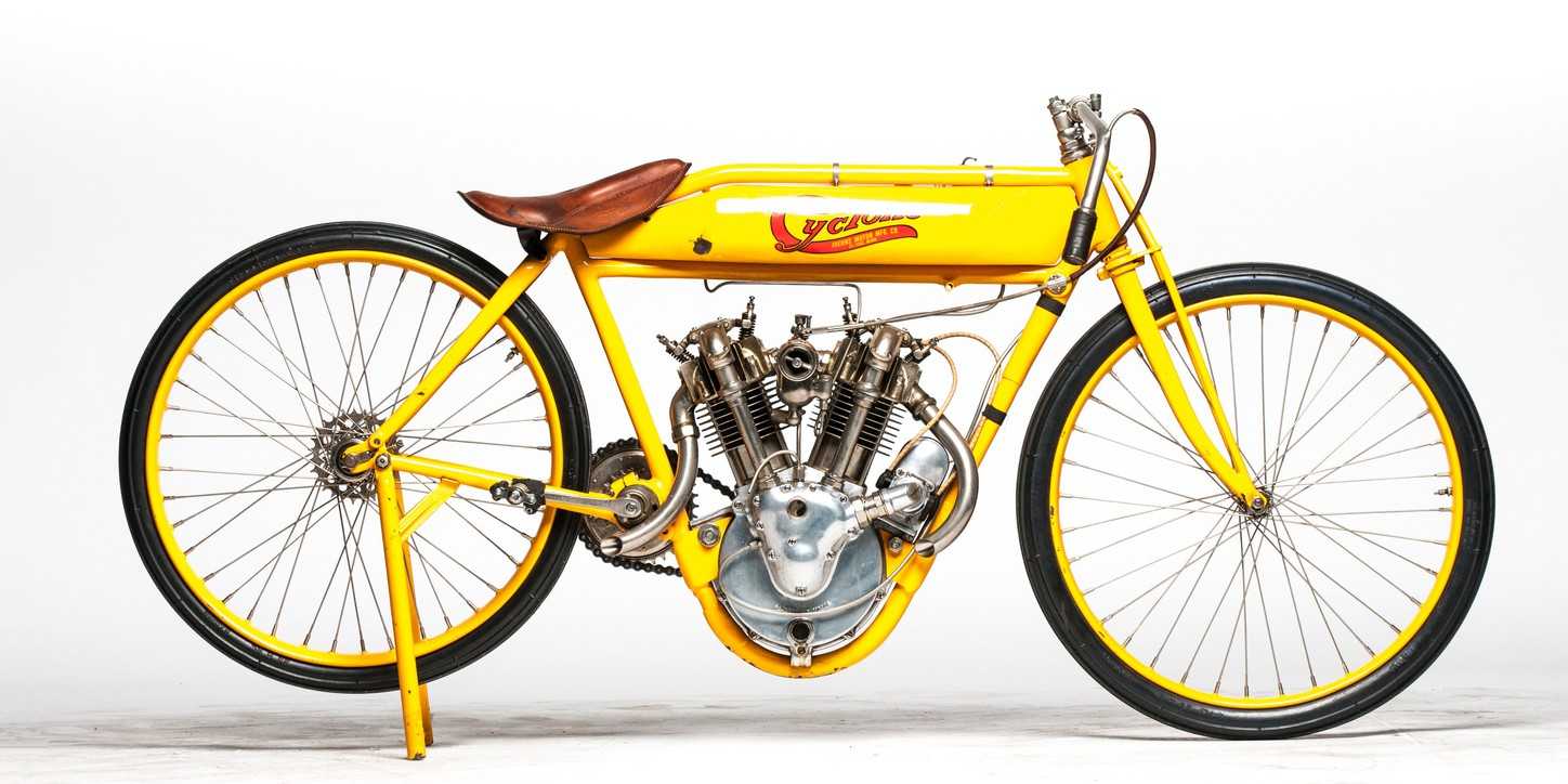 На втором месте находится Cyclone Board Track Racer, 1915 года выпуска, проданный из личной коллекции Стива МакКуина за 852.000$. В год своего выпуска этот мотоцикл имел самый продвинутый двухцилиндровый V-образный двигатель, объёмом 999,6 см3, способный разгонять байк до 178 км/ч. И да, у этого трекового мотоцикла, по традиции тех времён, не было тормозов!