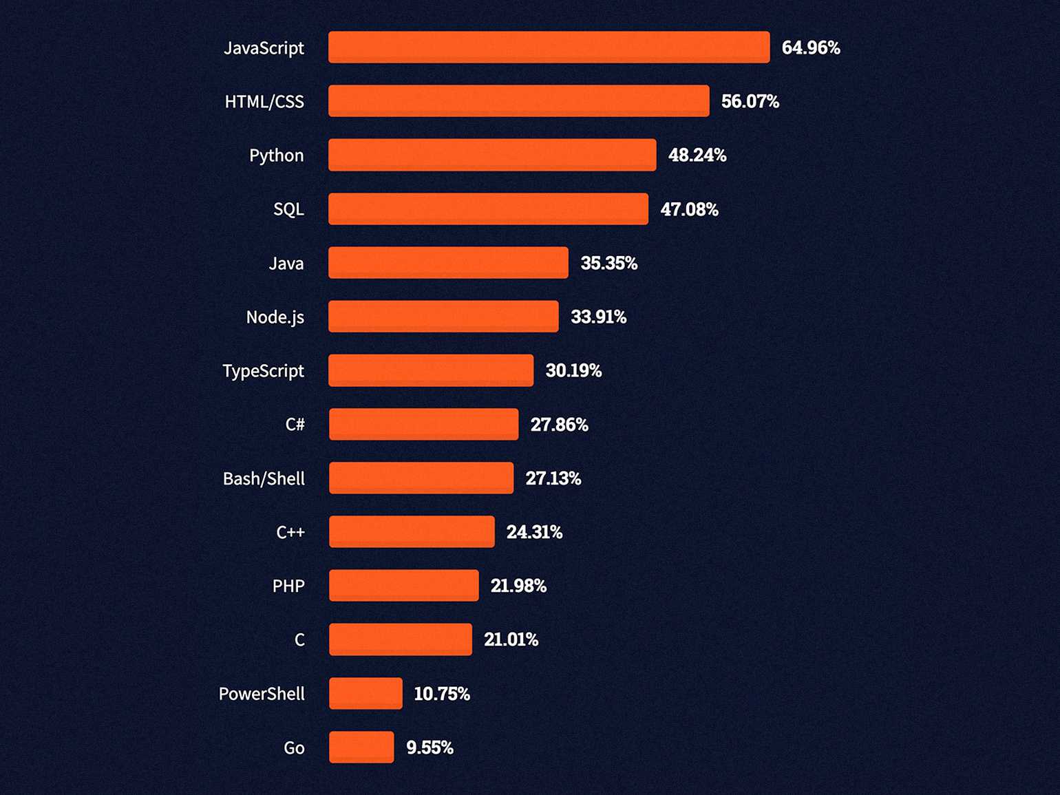 — популярная платформа вопросов и ответов о программировании. Ежегодно Stack Overflow проводит среди своих читателей опрос о популярности языков, фреймворков, баз данных и других технологий. Здесь первое место на протяжении последних девяти лет занимает JavaScript, но и популярный в TIOBE Python находится в топе.