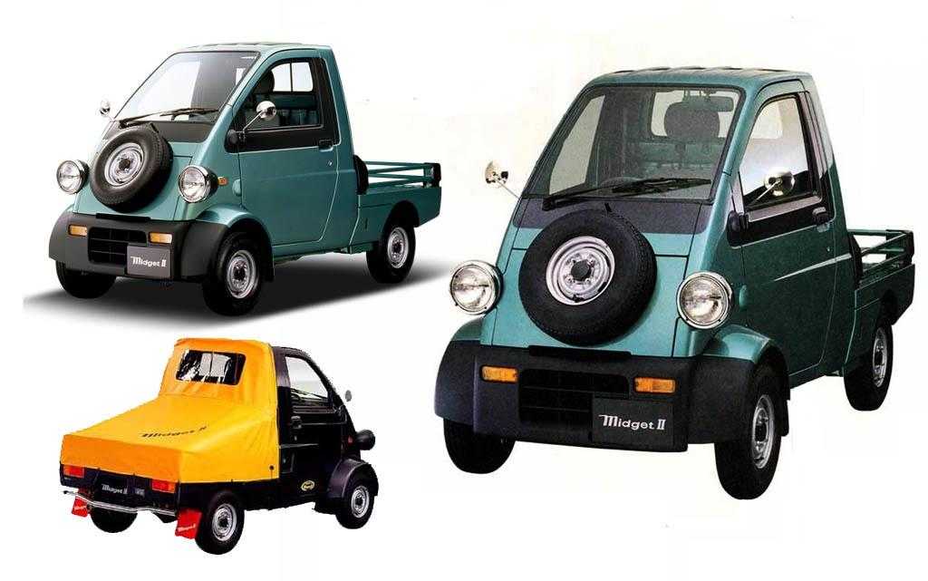 К микро-грузовичкам в Японии особое отношение. Именно на их хрупких плечах обеспечивался послевоенный рост экономики и развитие малых предприятий. В 1957 году Daihatsu выпускает грузовичок, а по сути мотороллер, с говорящим названием Midget (Карлик). Он оснащался скромным 250-кубовым мотором, а его грузоподъемность не превышала 300 кг. Как продукт совей эпохи, Midget был актуален и выпускался аж до 1972 года, пока его не сменили более мощные и грузоподъемные автомобили.