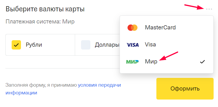 - Получите карту платежной системы МИР, если вы еще ее не имеете.