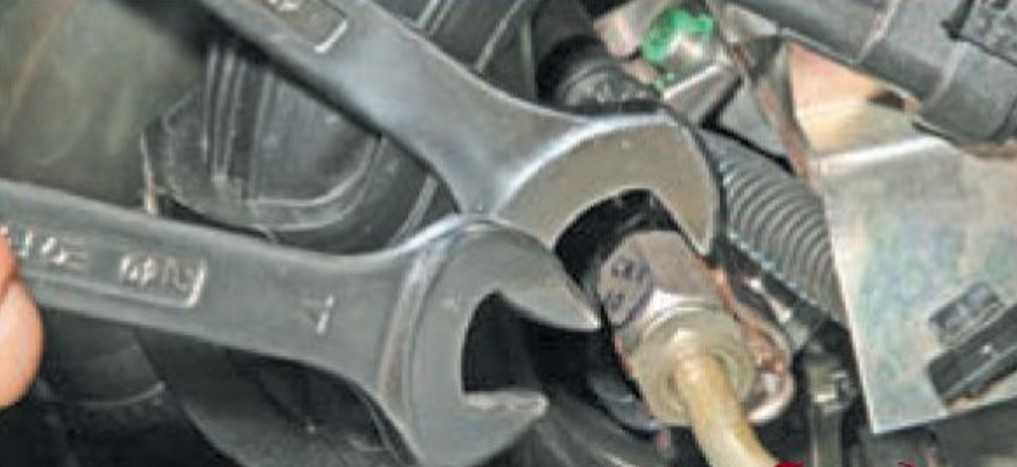 Берем два Ключа на «17» и раскручиваем штуцерное соединение, аккуратно не повредив трубку.