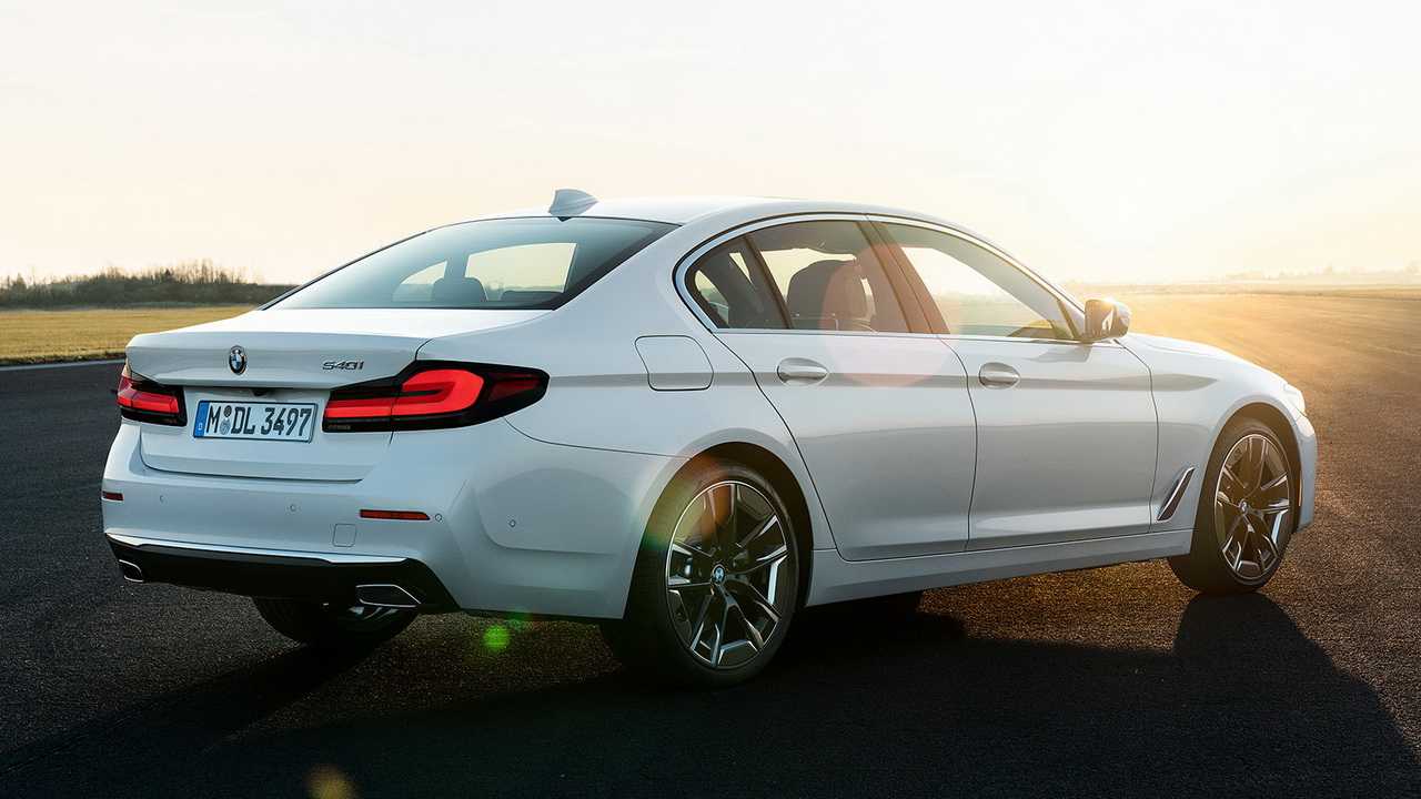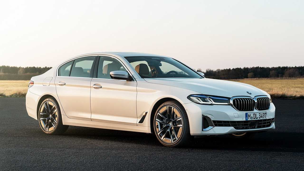 В ходе модернизации «пятерка» серии G30 обрела новое «лицо» с иной по форме и наполнению головной оптикой, а также подправленной решеткой радиатора в форме восьмигранников. Фары отныне щеголяют L-образными ходовыми огнями и по умолчанию оснащаются светодиодами. Опционально доступны матричные блоки с дальним светом BMW Selective Beam (состоит из четырех управляемых по отдельности диодов) или лазерно-люминофорными модулями, «бьющими» вперед на 650 метров. Последний вариант оптики легко узнается по синим вставкам на верхней кромке фар.