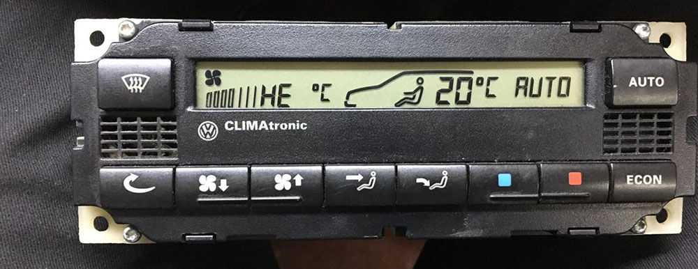 Производитель рекомендует придерживаться температуры воздуха на уровне 20 – 22° C при включённом автоматическом режиме. Среди особенностей климат-контроля Пассат Б5 следует отметить, что после включения водителем зажигания Climatronic сразу же переходит в автоматический режим, руководствуясь ранее заданными температурными показателями. Если отключить автоматический режим, выбранная программа будет сохраняться в оперативной памяти устройства на протяжении 60 минут. Если выключить зажигание и снова его включить, работа климатической системы начнётся с того же автоматического режима.