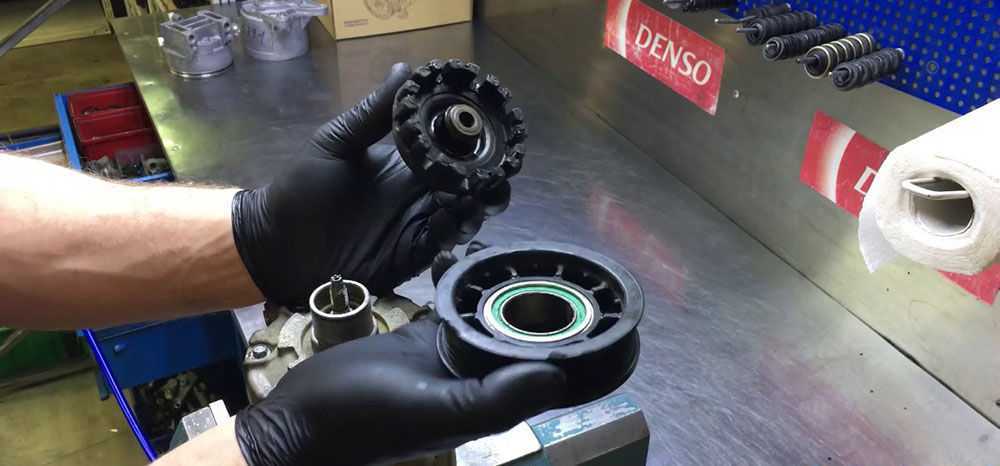 Часто причина неработоспособности климатической системы заключается в нерабочей муфте компрессора, при этом соответствующая ошибка может и не высвечиваться. Чтобы проверить муфту, необходимо запитать её разъёмы непосредственно от аккумулятора. Если раздастся характерный щелчок – то проблема не в муфте, в противном случае она, вероятнее всего, сгорела бы. Её придётся заменить, хотя в сети можно найти инструкции, как попытаться самостоятельно её отреставрировать. Основная сложность здесь заключается именно в разборке компрессора.