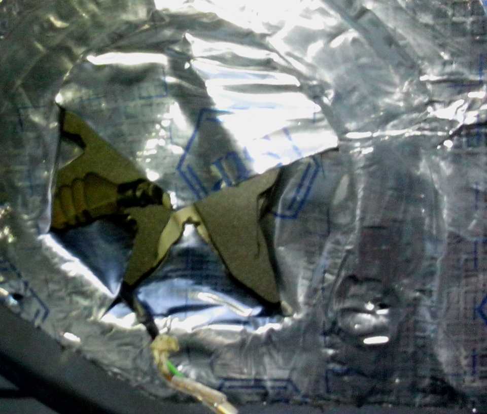 - Вытаскивается жгут с проводкой из центральной стойки, извлекается гофра.