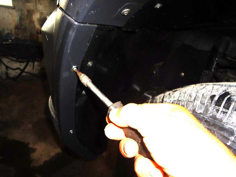 7. Отворачиваем винты крепления кожухов передних колесных ниш.