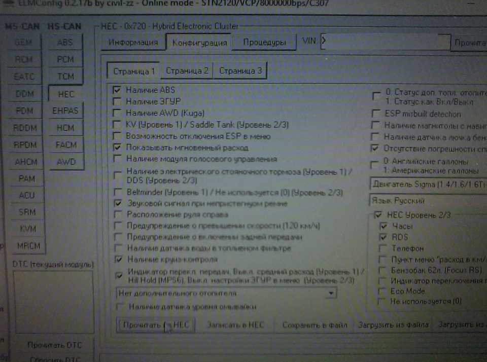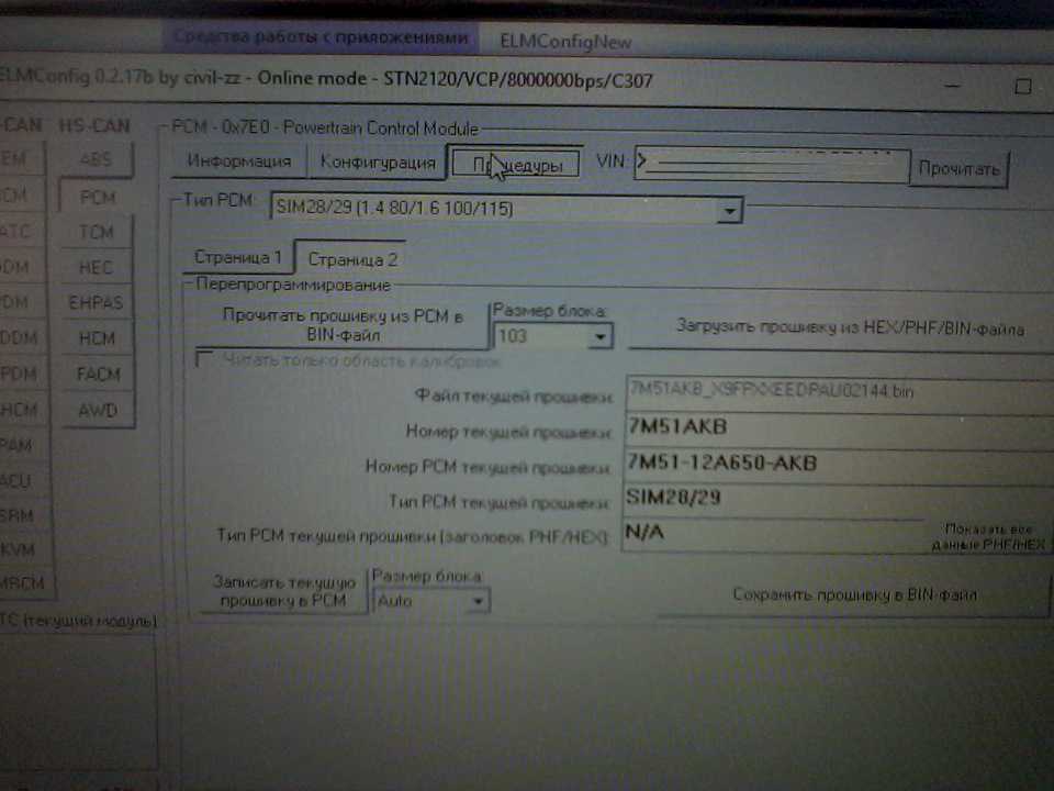 переходим в процедуры — страница 2.нажимаем прочитать прошивку из PCM в bin файл.сохраняем ее.далее нажимаем загрузить прошивку из HEC/PHF/BIN-файла, выбираем нашу сохранную и нажимаем на записать текущую прошивку в PCM.