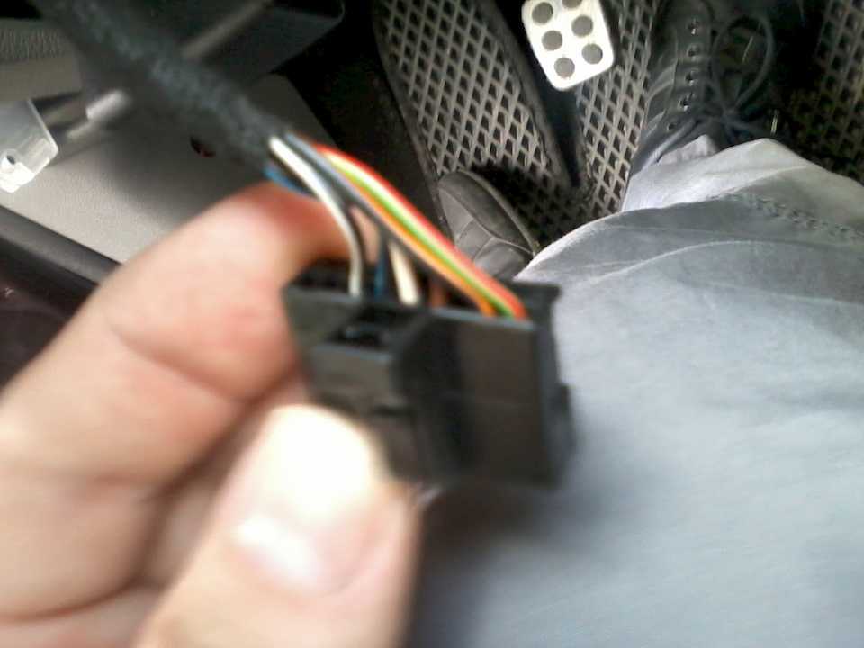 затем ищем нужную нам колодку и убеждаемся что в ней 6 проводов, нужные нам корчиневый и белый.