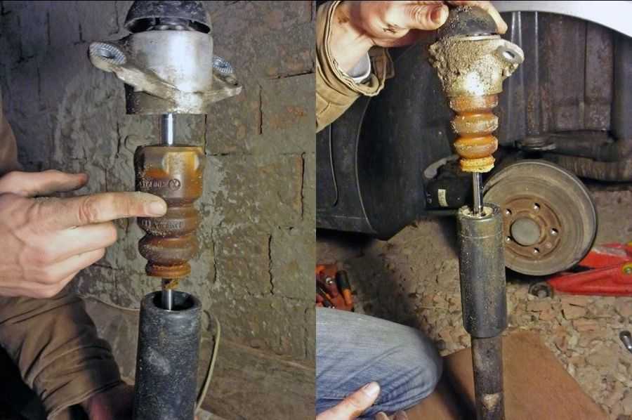 Ещё одним немаловажным отличием от работы, выполняемых на передней подвеске, является отсутствие необходимости извлекать пружины из стойки. В этом случае, достаточно демонтировать только амортизатор.