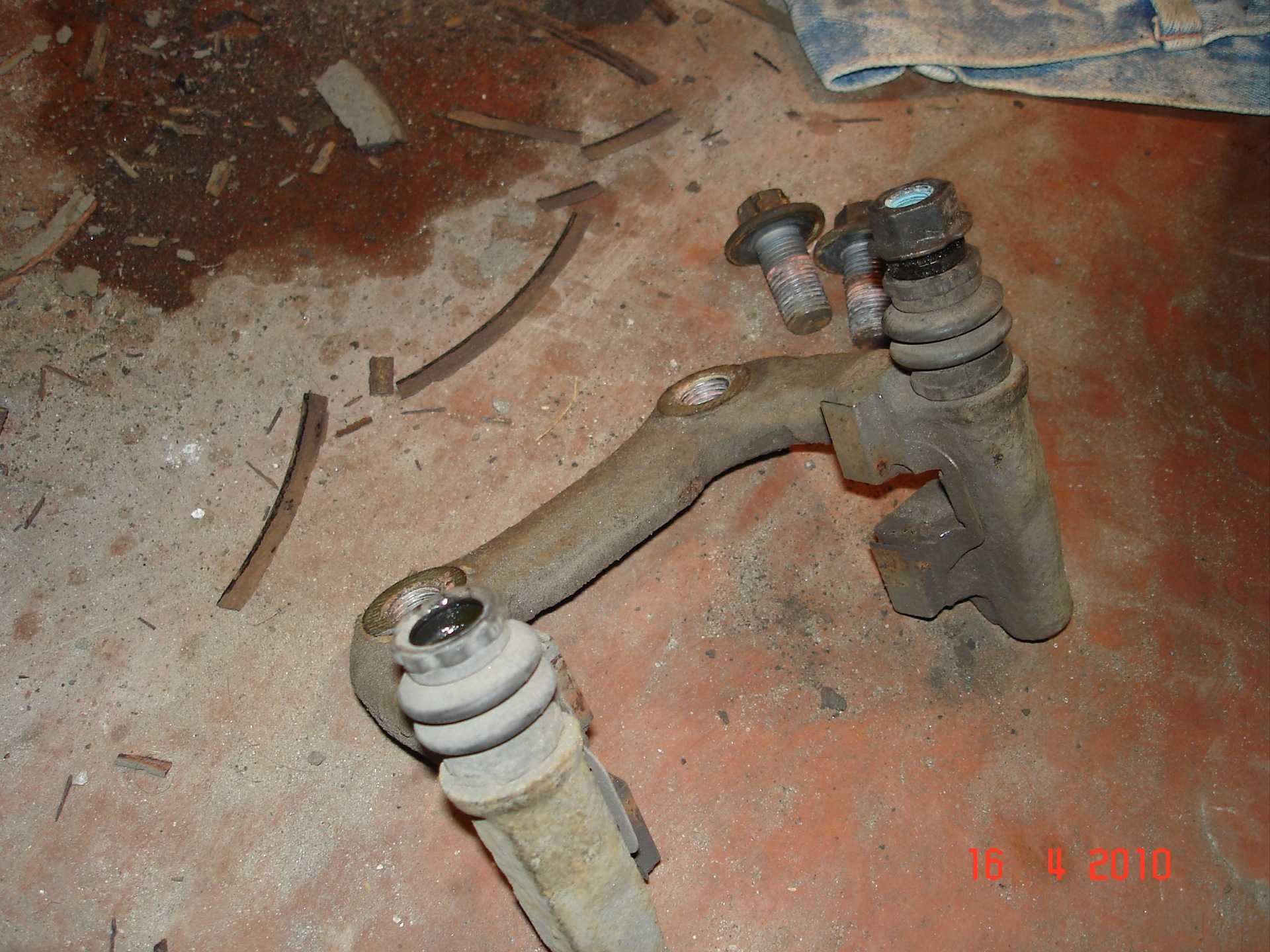 - Затем можно выкрутить гайки и вынуть крепление кулака к стойке.