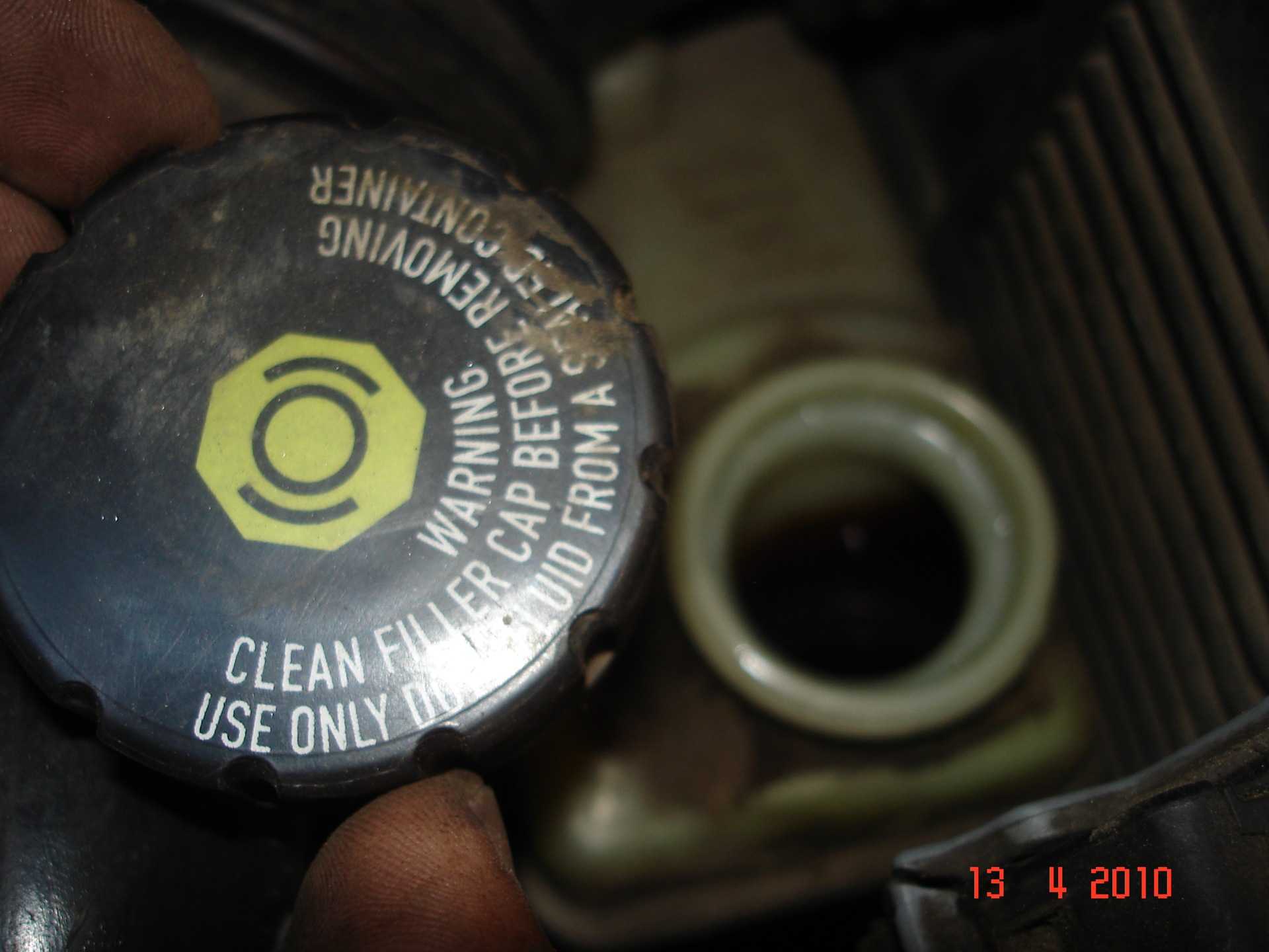 Не трогайте до этого момента рычаг ручного тормоза! Затем доведите уровень тормозной жидкости в бачке до максимума.