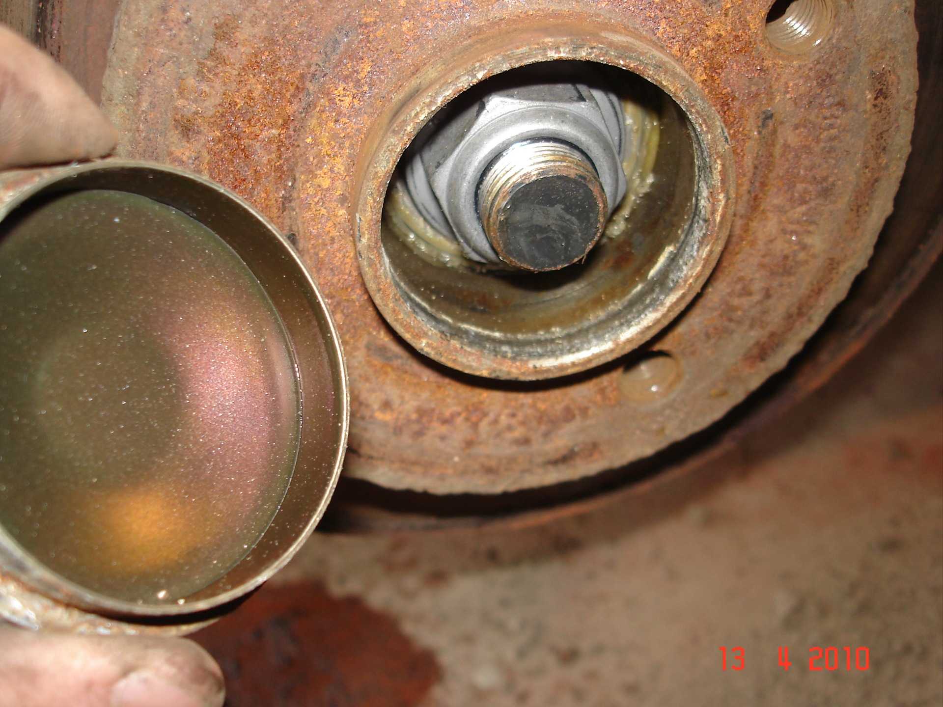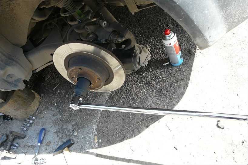 - Далее снимаем тормозной диск. Перед тем как его откручивать, желательно залить в отверстие вдш-ку и обстучать его.