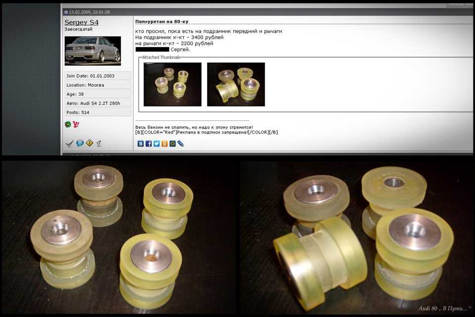 Audi 80 > › Бортжурнал › Полиуретановые сайлентблоки в передние рычаги Audi 80 («Без Люфтов» ). Новости, доработка-окончательная форма. SPRINTER 80 на мобильном.