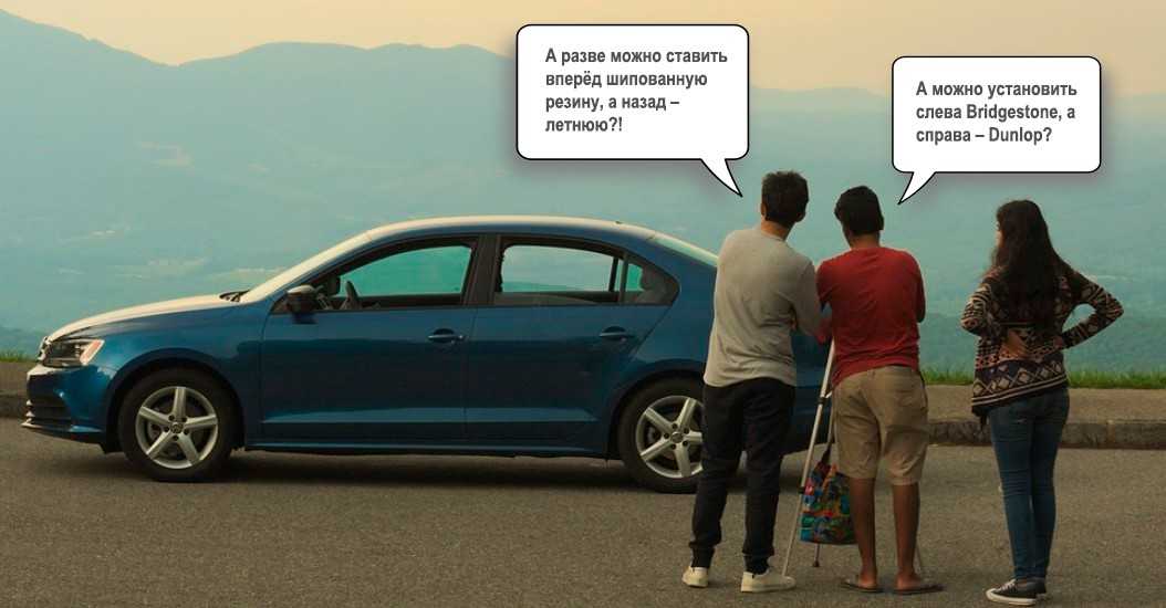 - нельзя ставить летнюю и зимнюю резину на одной оси справа и слева соответственно,