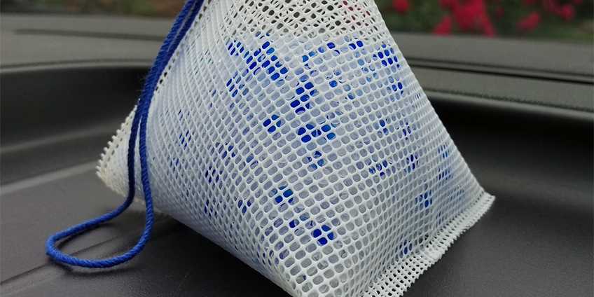 Идея осушения воздуха заключается в размещении силикагеля в салоне. Последний представляет собой гранулы округлой формы, с максимальным размером 5 мм. Просто насыпать порцию вещества массой 150-200 г не получится. Гранулы размещают в тряпичных мешочках. Для этой цели можно взять пару носков. Наполнитель засыпают и плотно завязывают «горловину». Если осушитель планируют разместить на видном месте, в качестве сосуда применяют декоративные мешочки или корзинки.