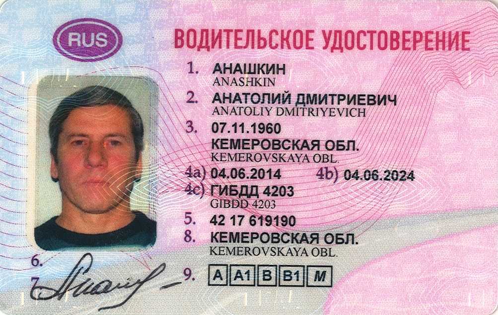 - личные идентификационные данные водителя (ФИО, дата и место рождения);