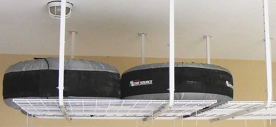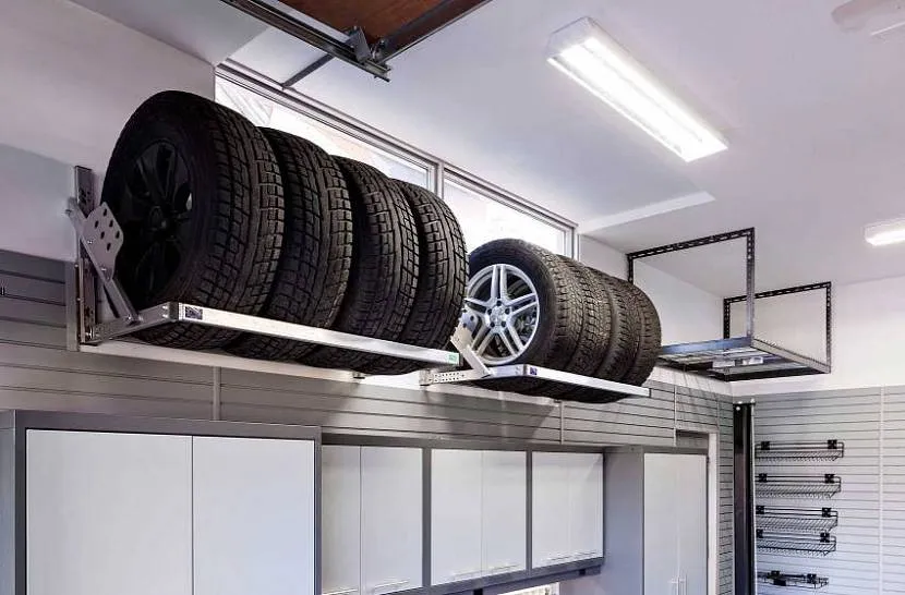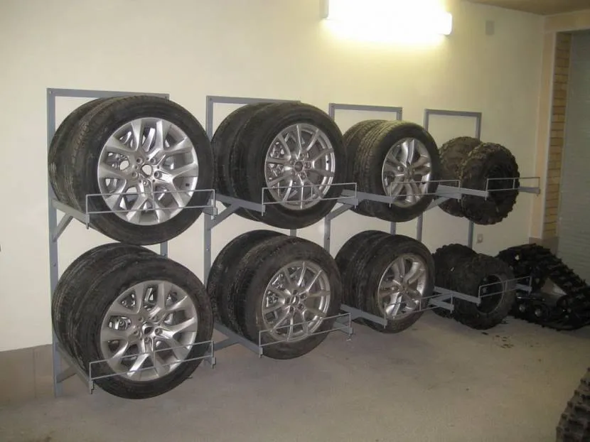 Организовать правильное хранение шин и колес в гараже можно с помощью различных приспособлений.
